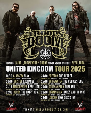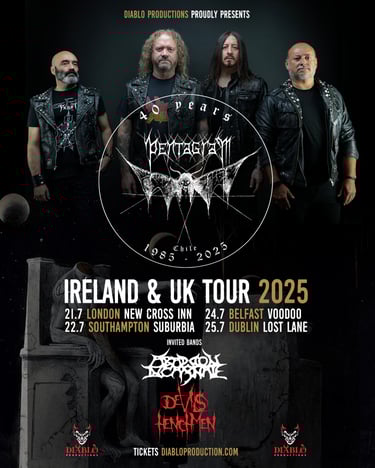 2025 marked an exciting new chapter for the band. With the arrival of drummer Harry Walker, Devils Henchmen began performing more shows than ever. In August, they embarked on a UK/Ireland tour with Pentagram (Chile). Riding this momentum, the band is expanding internationally, with upcoming shows in Portugal, the Isle of Man, and Dubai, while preparing for an eight-date UK tour with The Troops of Doom. 2025 also sees the release of new music, with the single 'Urban Death' set for early October, followed by a second release to close out the year.