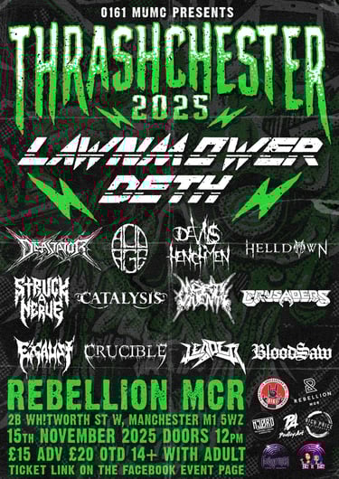 Devils Henchmen are a four-piece thrash crossover band from Liverpool, UK, formed in 2016. They quickly made a name in the local underground scene with their thrash-infused riffs on early releases. 2020’s 'Built By Hate' marked their most aggressive, riff-driven work yet, refining their signature thrash crossover sound.